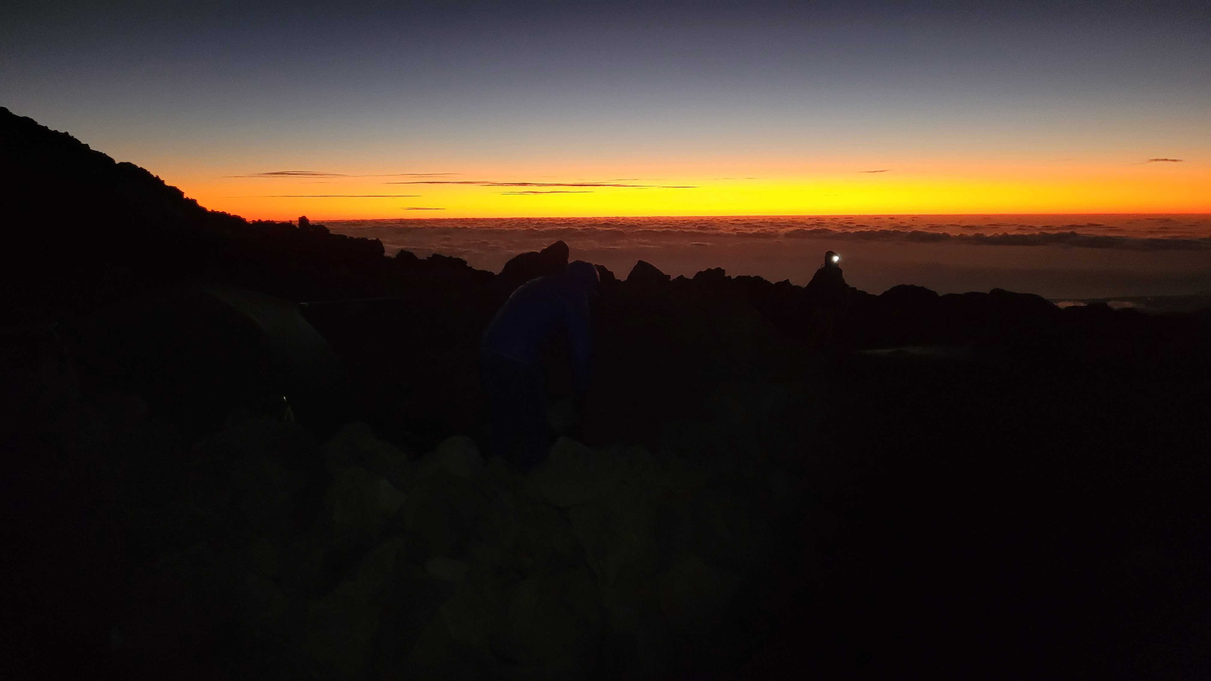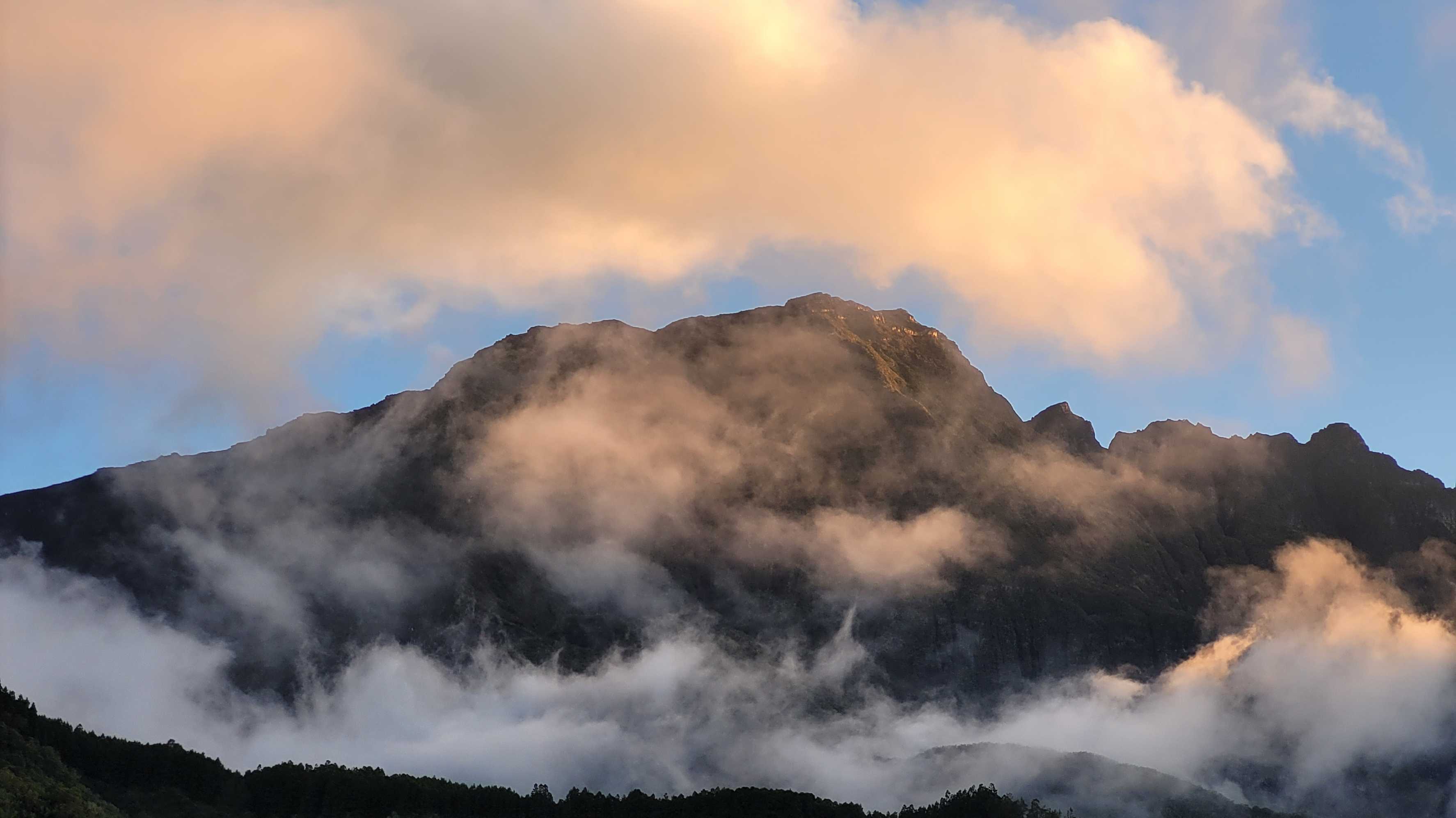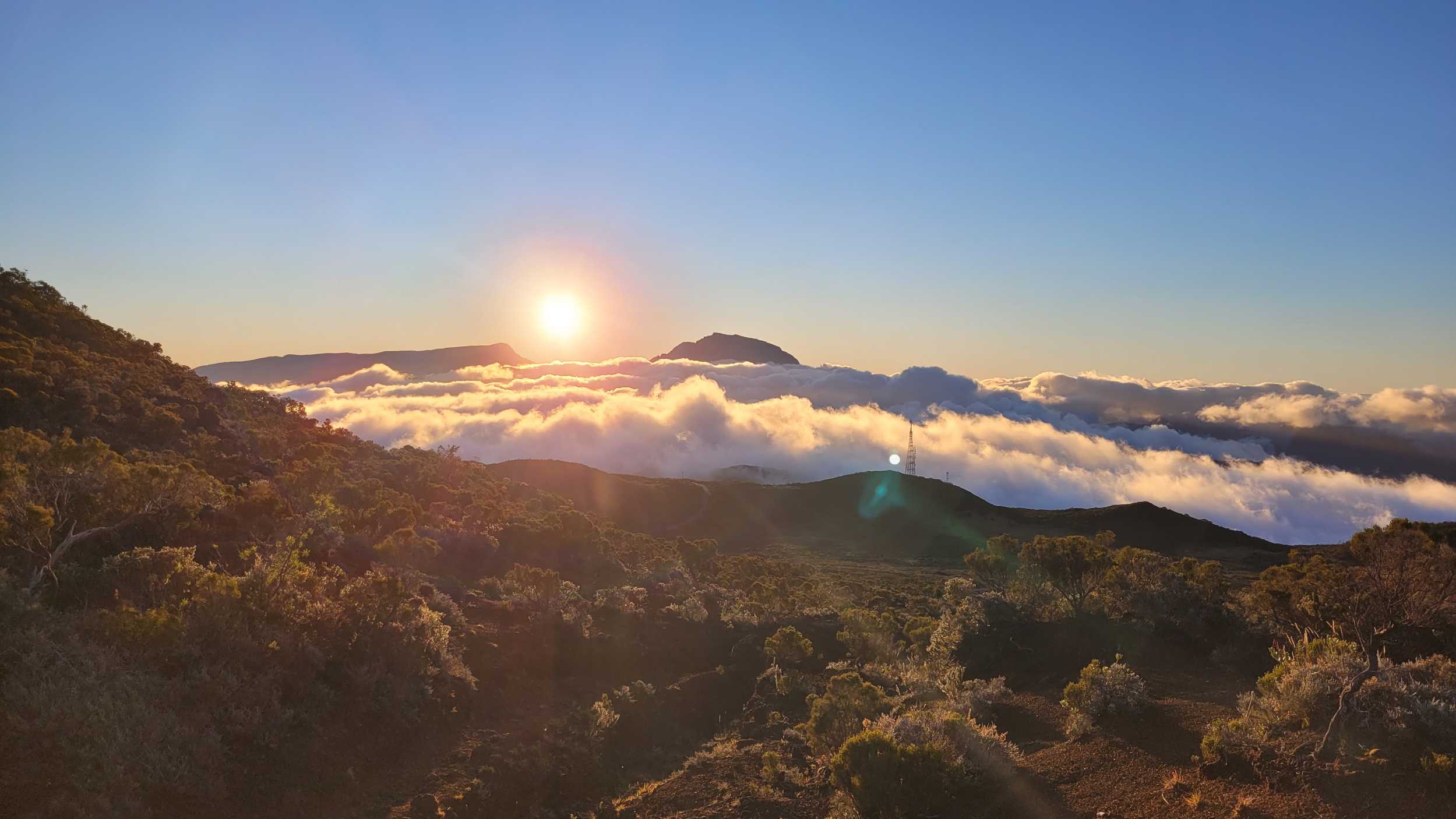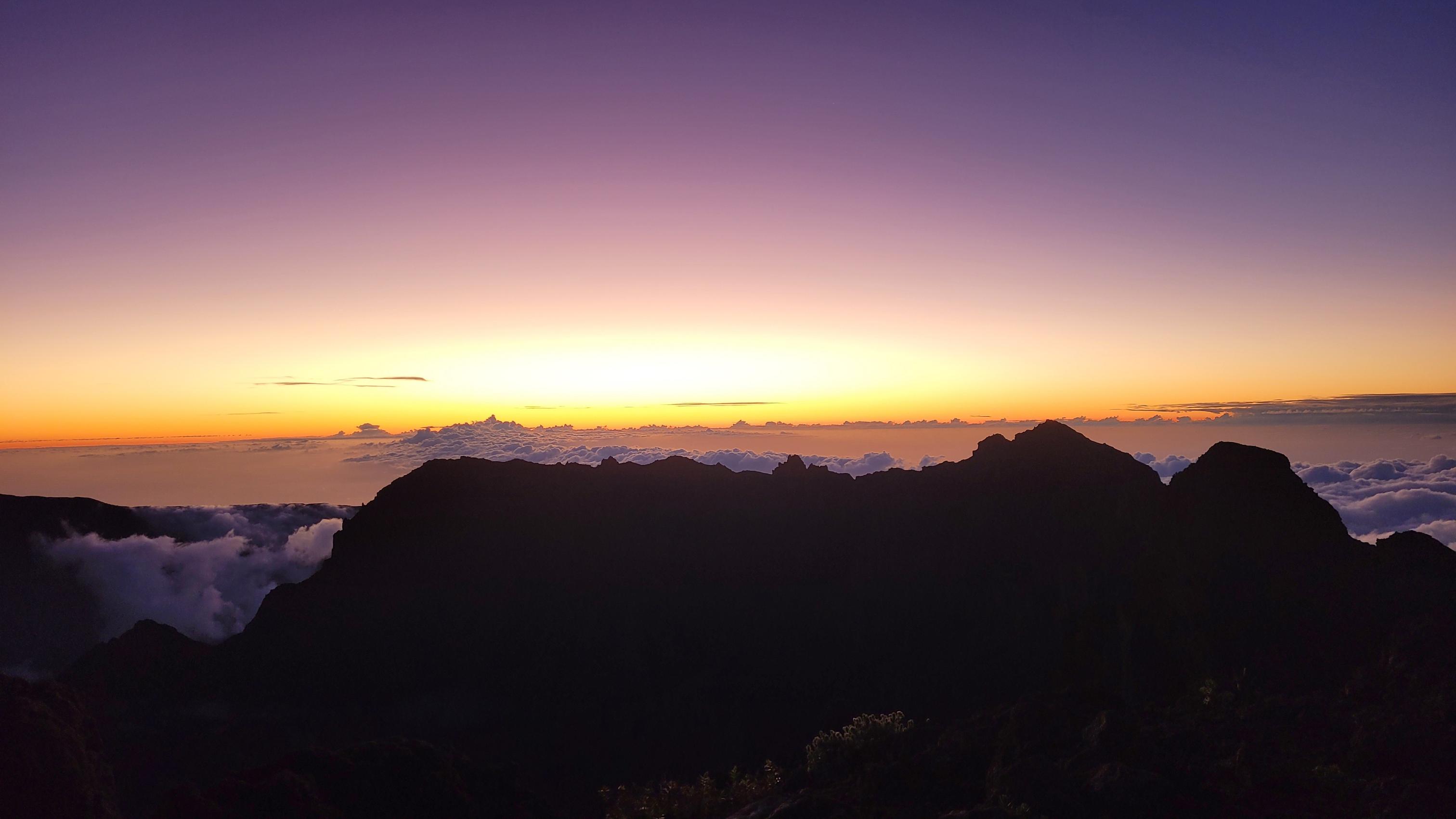 Wir genossen noch den schönen Sonnenuntergang auf Höhe des Piton de Neiges, auf dem wir vor ein paar Tagen waren.