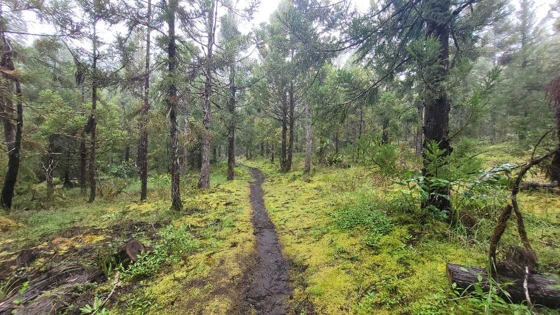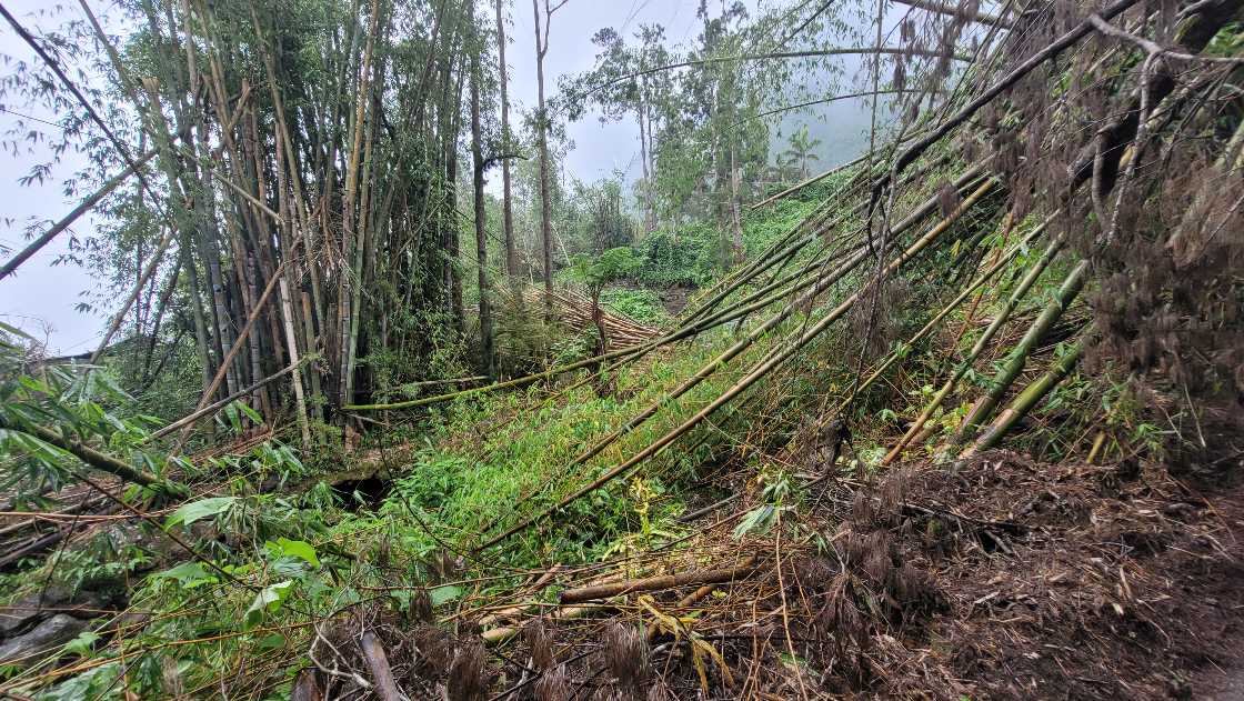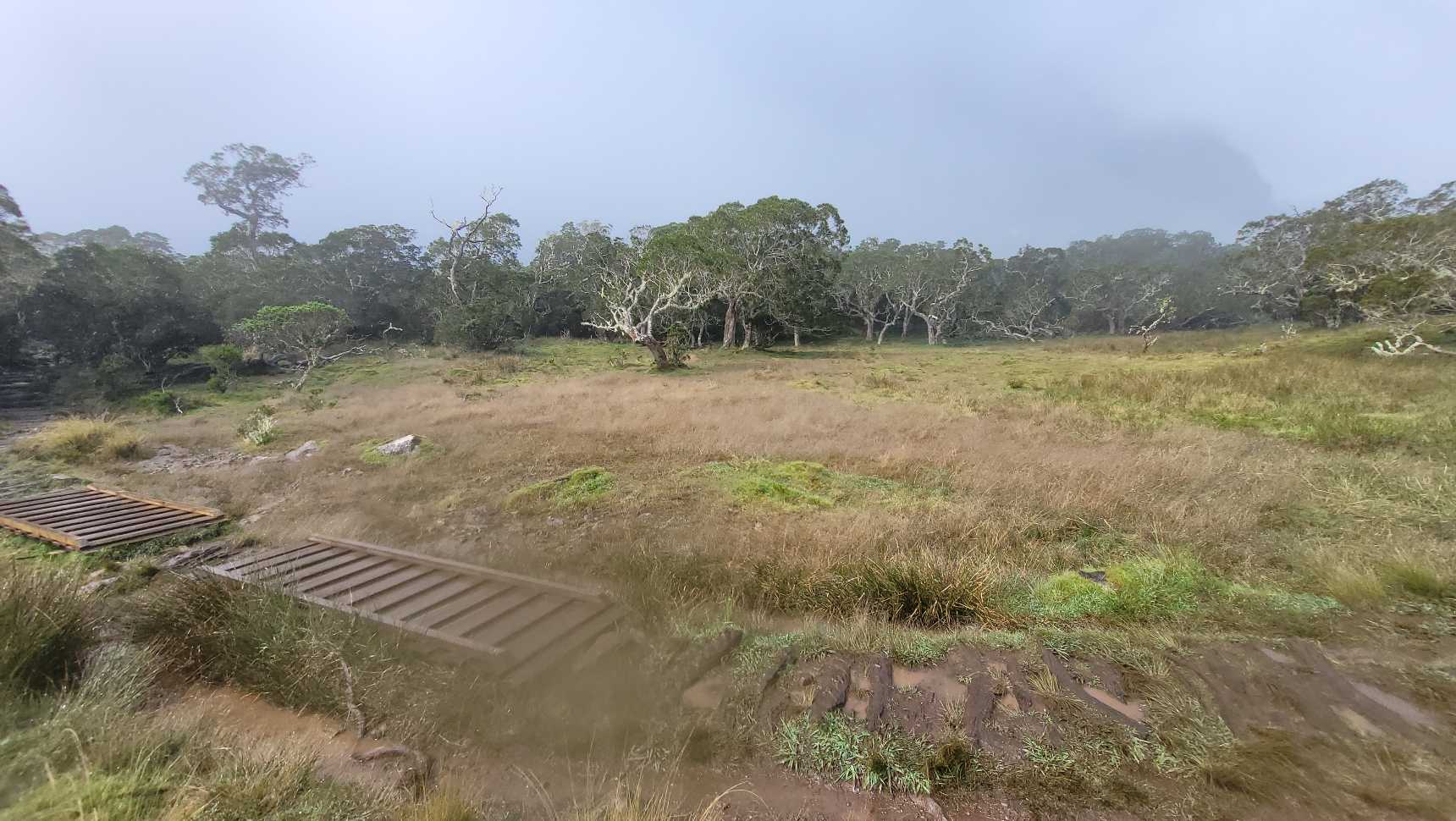 Am Ende der kante änderte sich wieder die Vegetation von Steppe auf Urwald. Nun mussten wir 1400m steil nach unten über einen schmalen steig. Aus dem Steig wurde ein Grad. Leider konnte man nichts viel sehen da starker Nebel aufgezogen ist. Vielleicht war es auch gut, den es schien wirklich steil nach unten zu gehen!