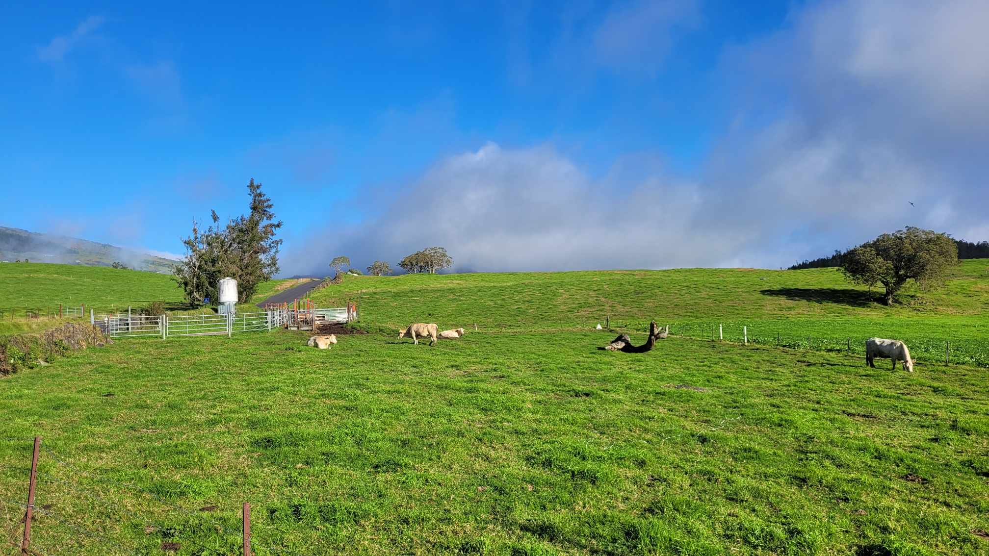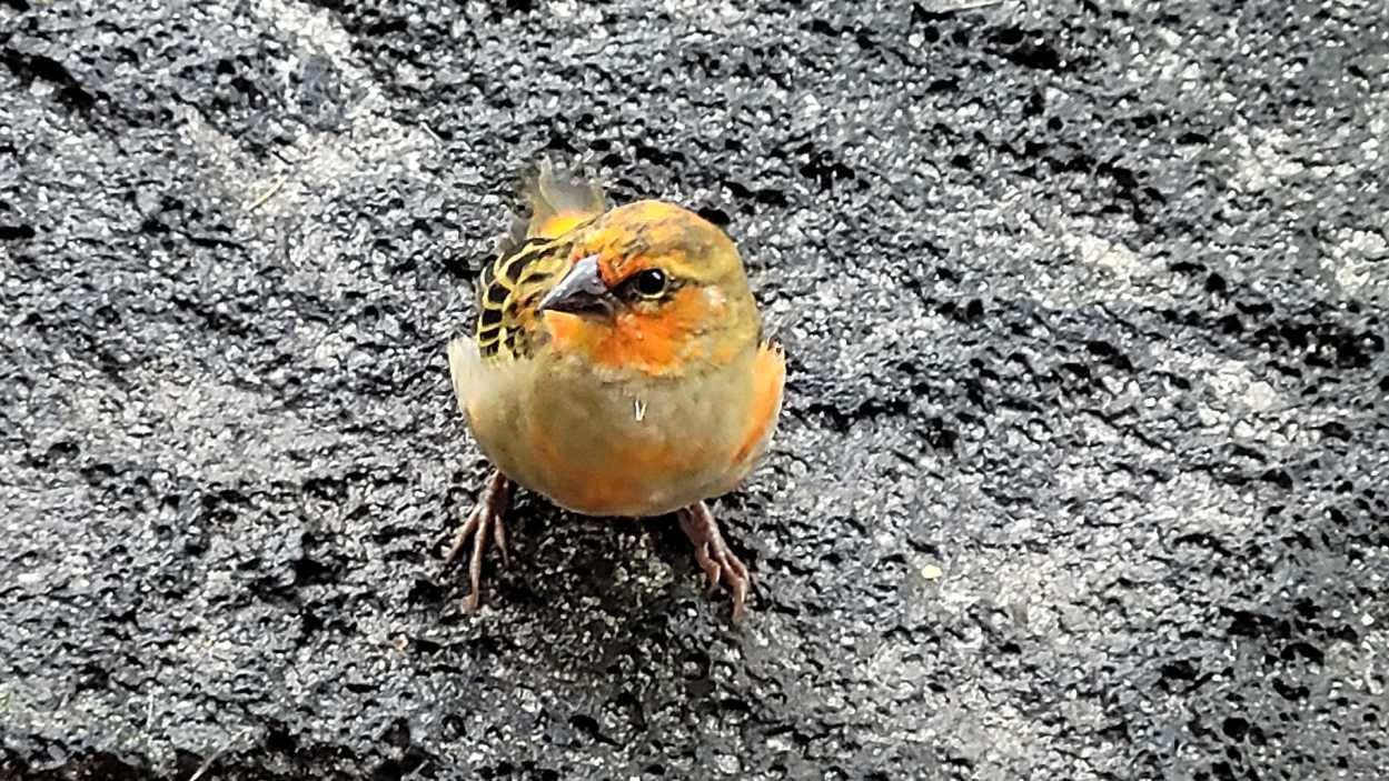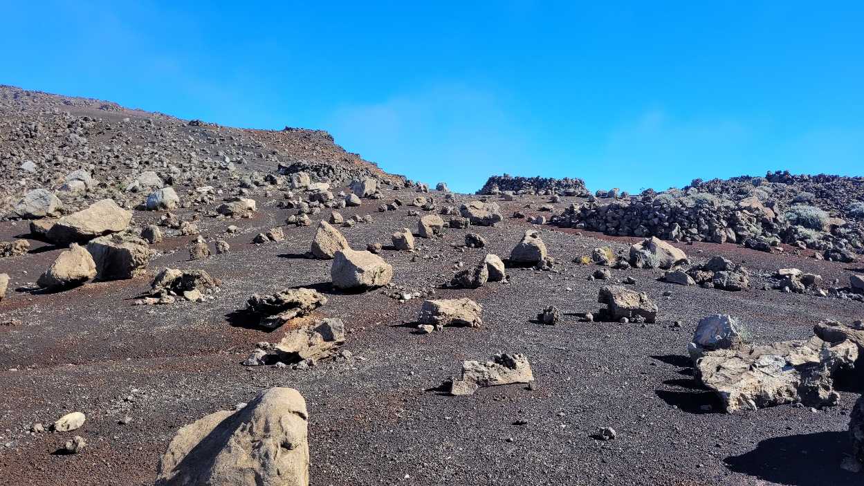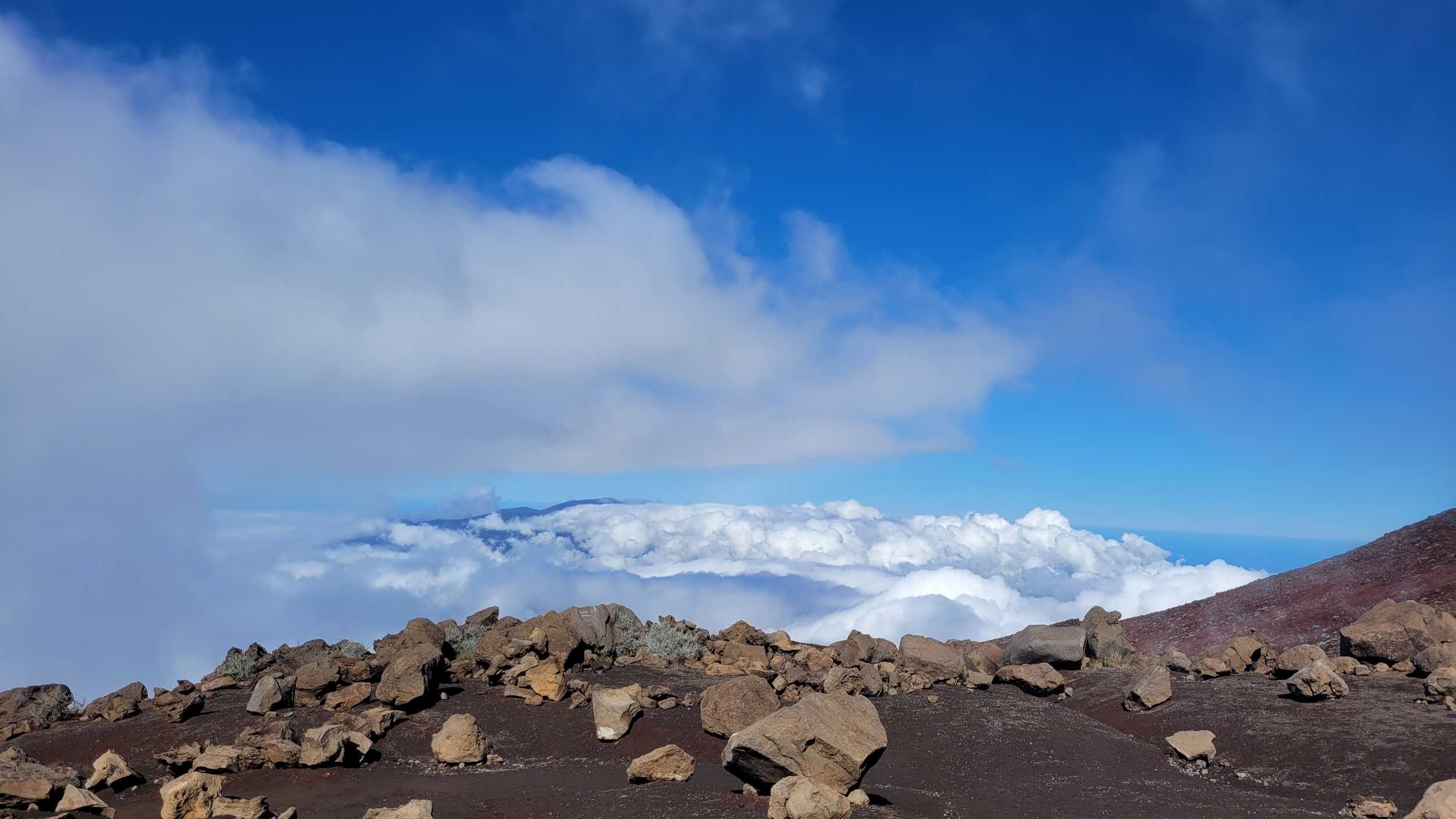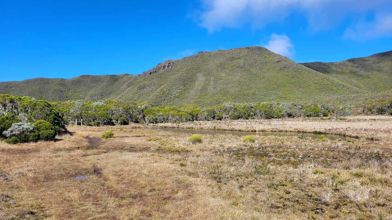 Zum Glück ist es aber trocken geblieben. Nach dem Frühstück liefen wir warm angezogen los und erreichten eine Höhe von 2500 m. Leider hatten wir keinen absolut freien Blick auf den Piton de la Fournaise, weil die Wolken ihn meist verdeckten.