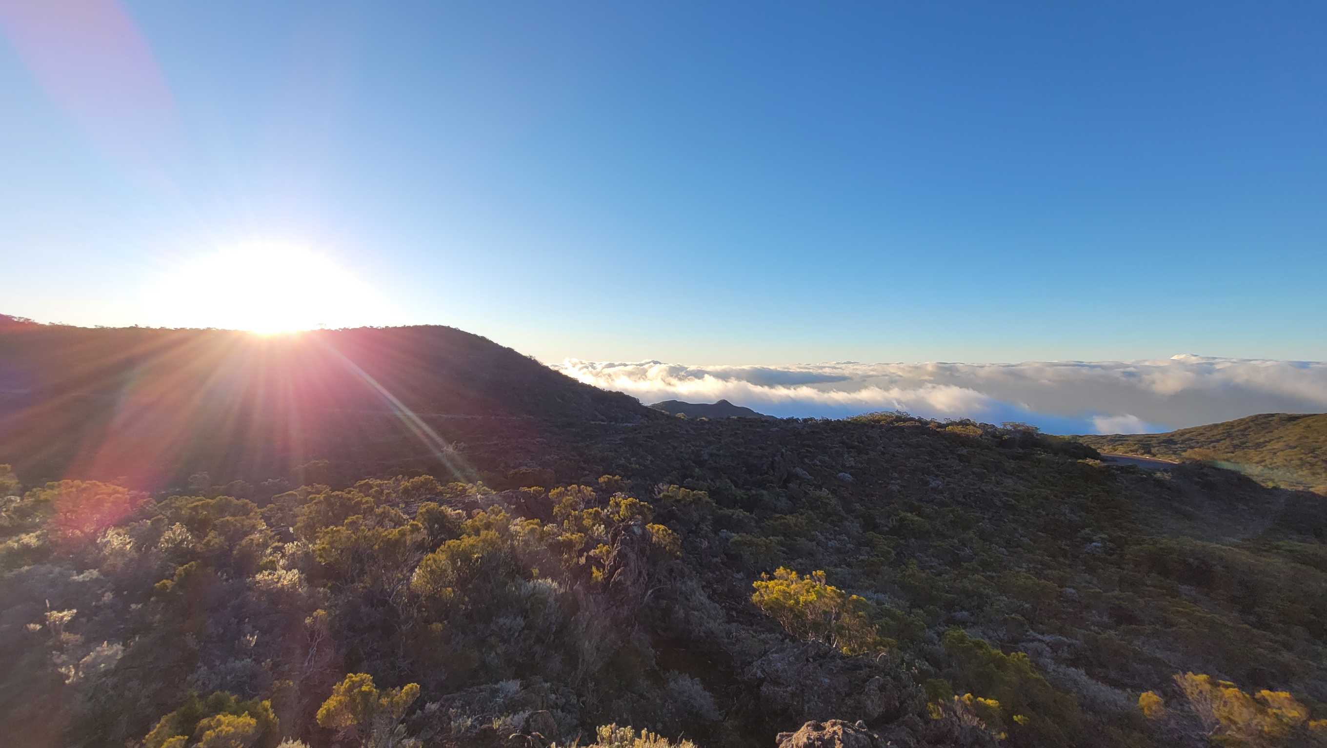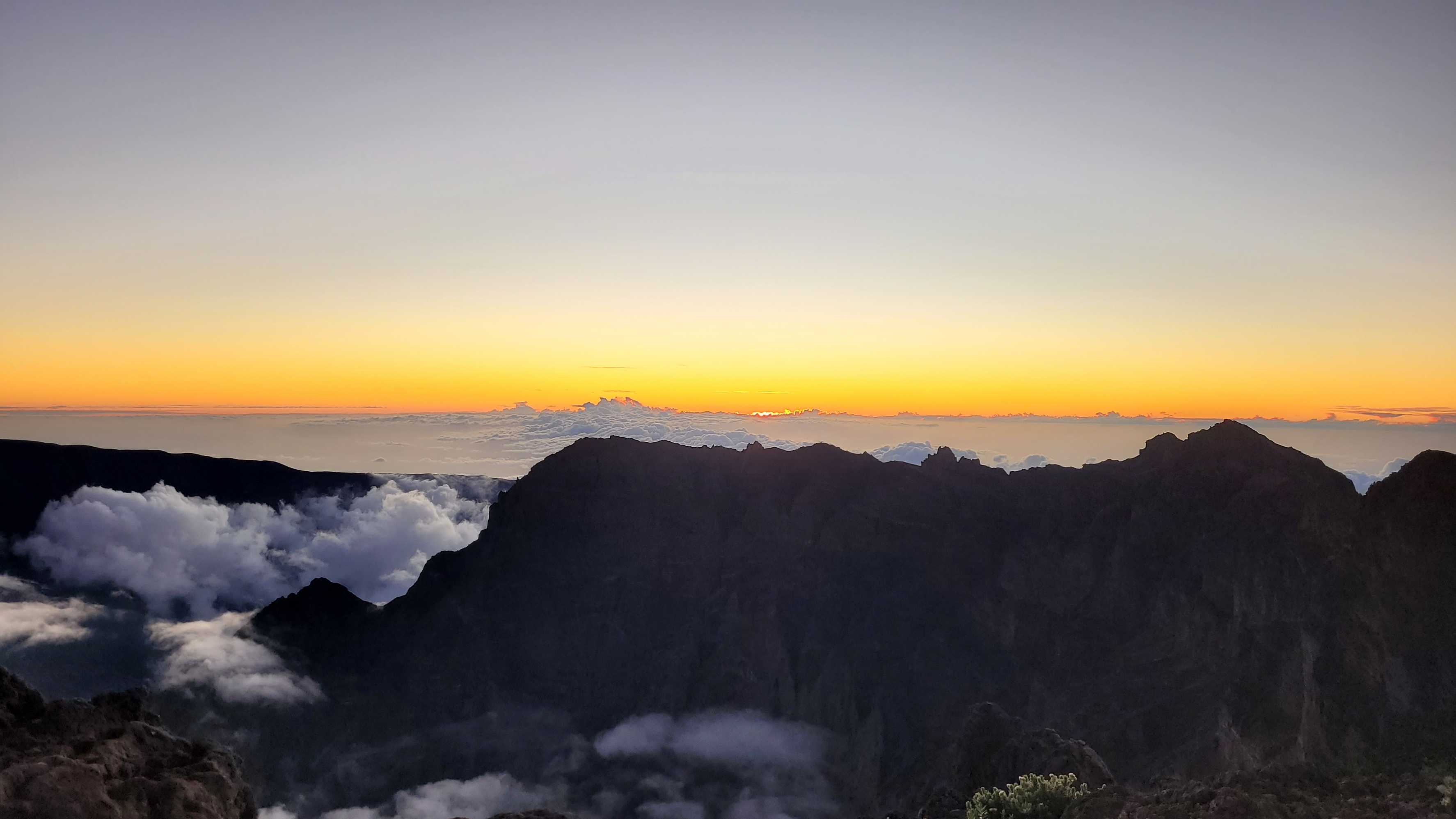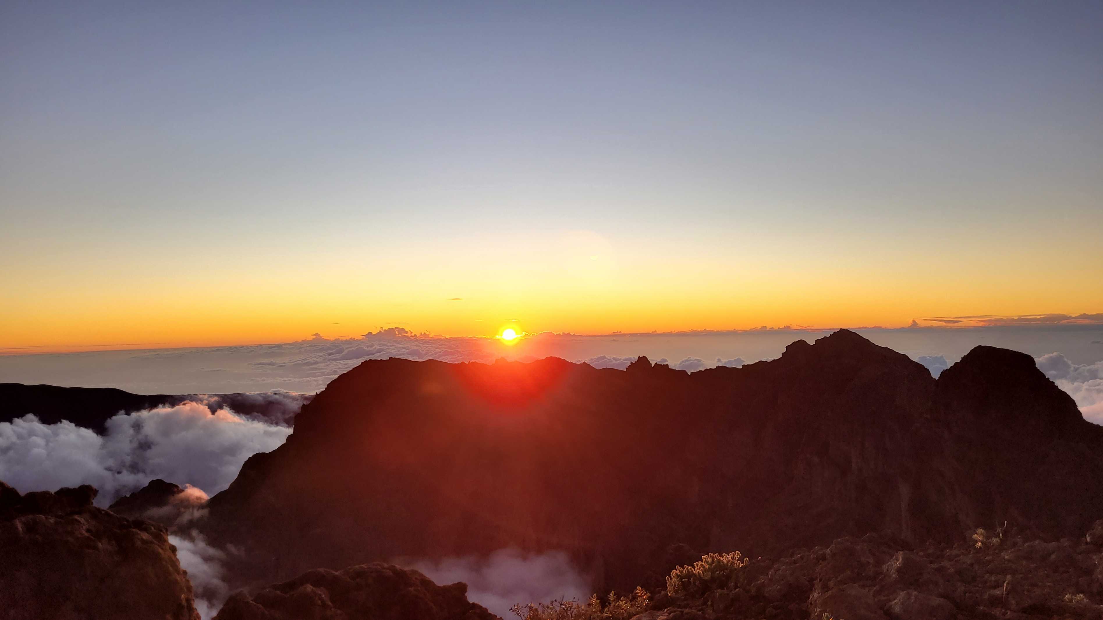 Wir genossen noch den schönen Sonnenuntergang auf Höhe des Piton de Neiges, auf dem wir vor ein paar Tagen waren.