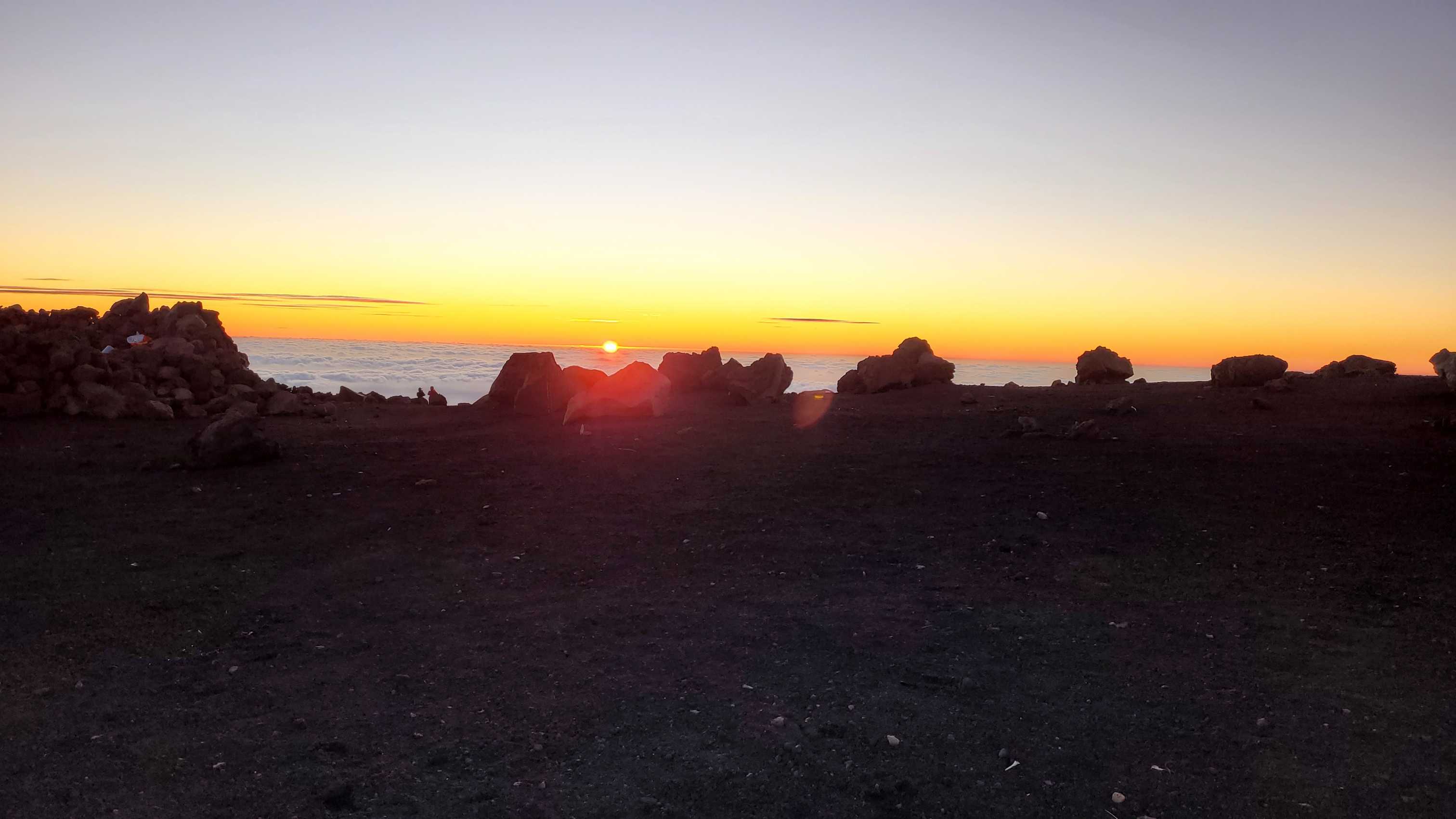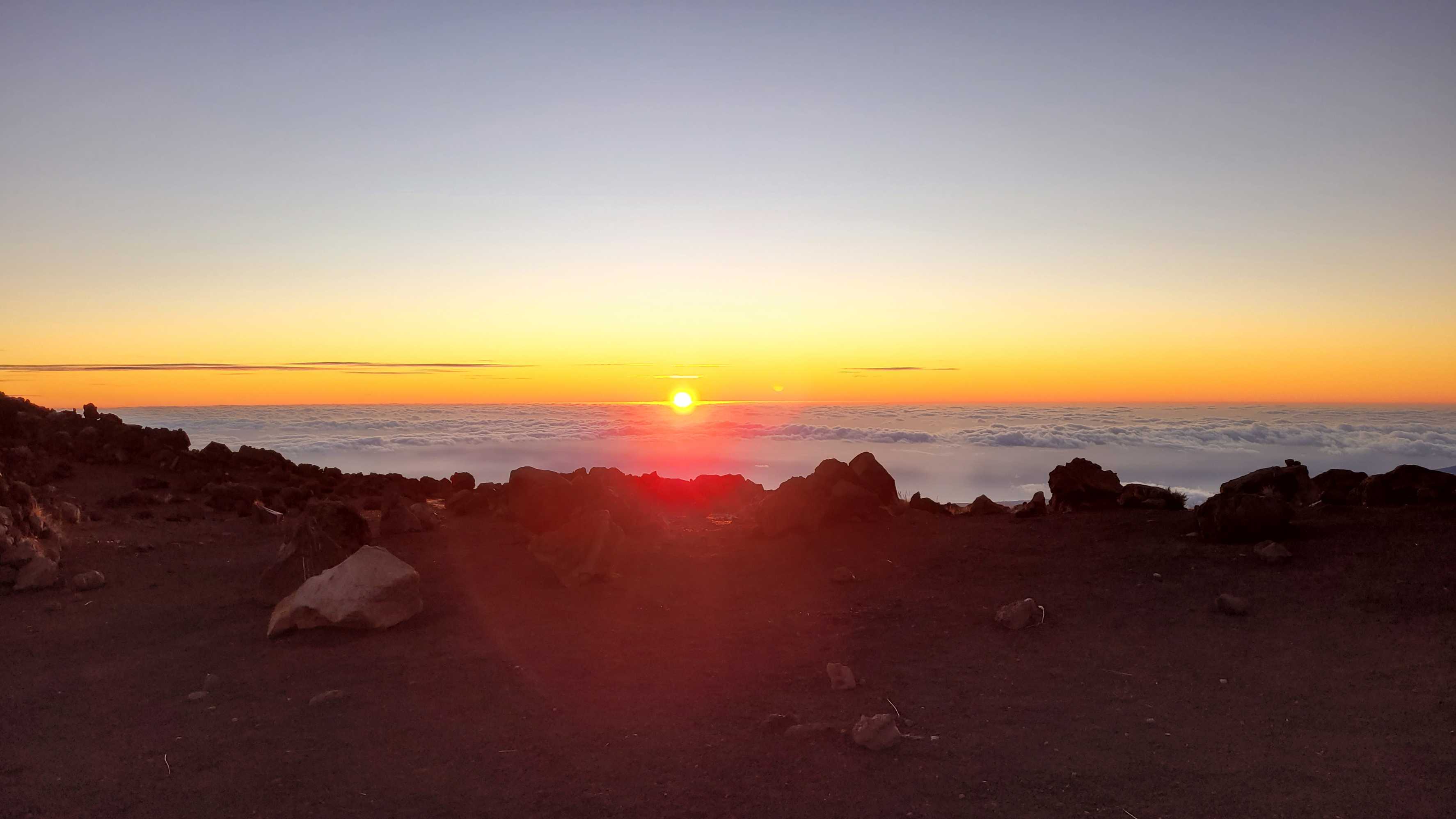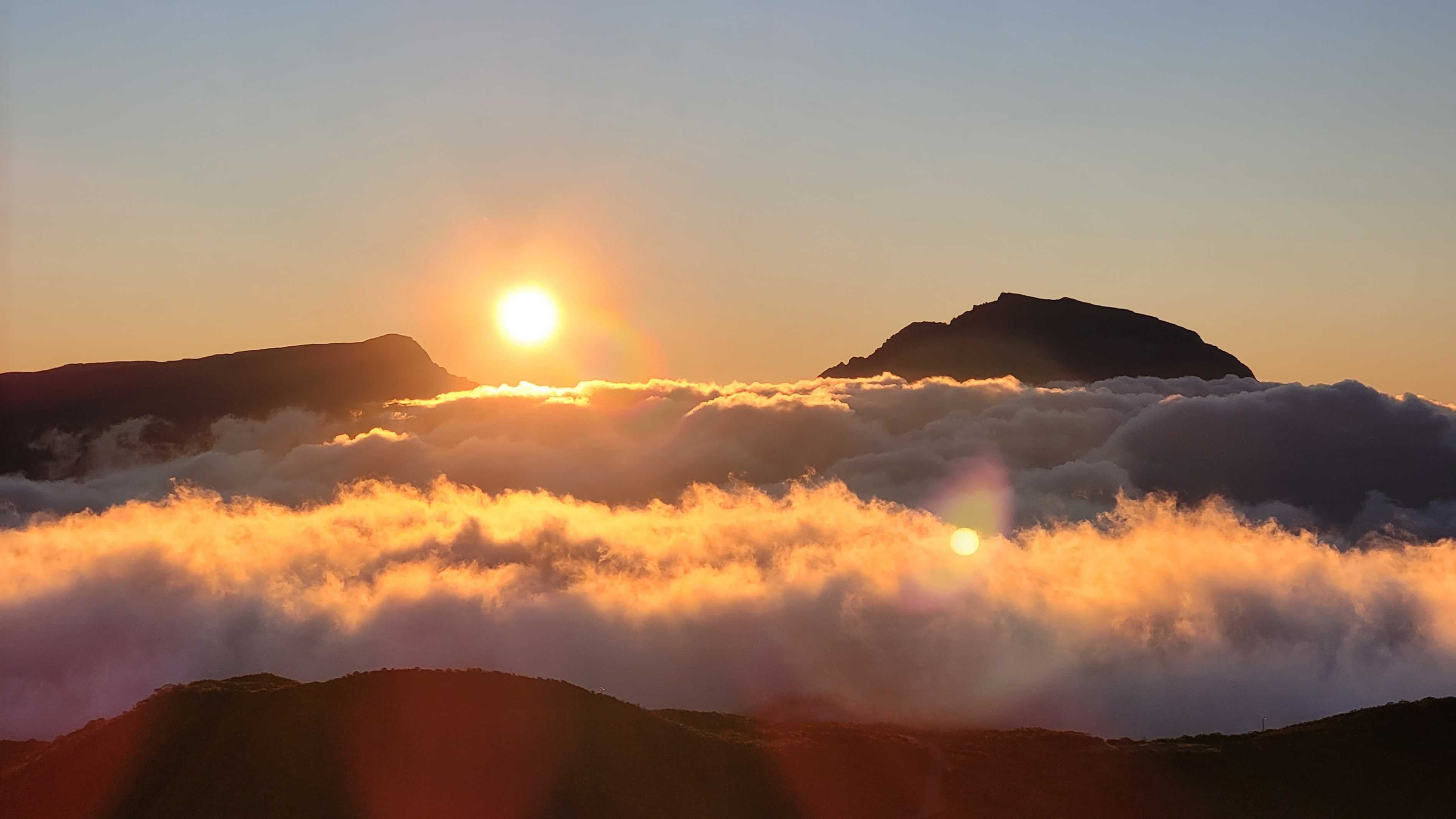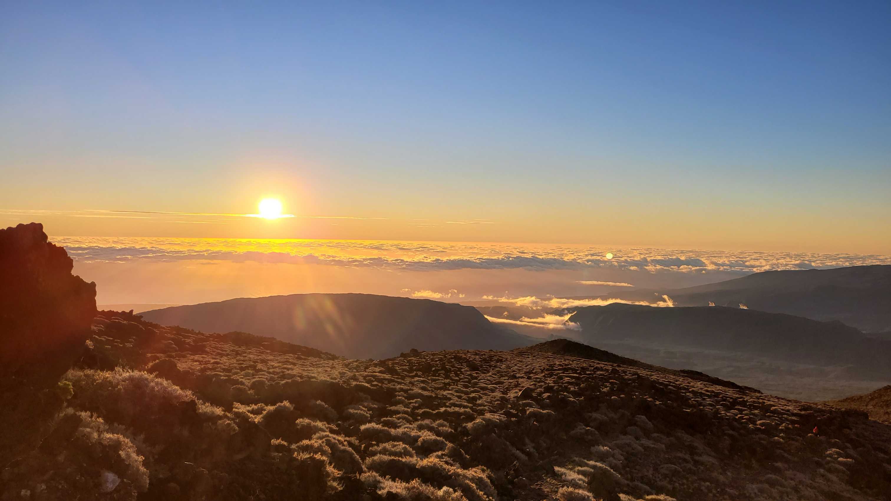 Wir genossen noch den schönen Sonnenuntergang auf Höhe des Piton de Neiges, auf dem wir vor ein paar Tagen waren.